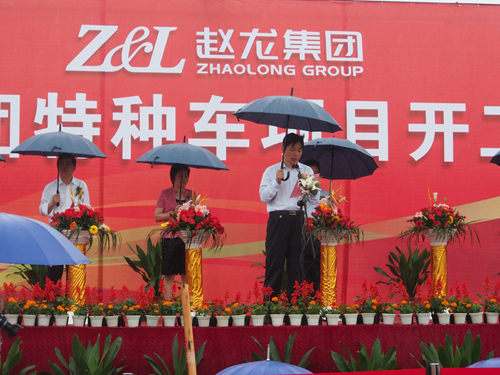 今年5月30日,趙龍集團年產(chǎn)1萬輛特種車輛及工程機械裝備產(chǎn)品產(chǎn)業(yè)化投資建設(shè)項目開工儀式隆重舉行。市委書記黃志平、市長何美華等市級班子領(lǐng)導(dǎo),各部門、義烏經(jīng)濟開發(fā)區(qū)、稠江街道、趙龍集團等單位領(lǐng)導(dǎo)參加了開工典禮。項目總投資20億元人民幣,規(guī)劃總用地430畝,其中一期用地213.3畝,主要生產(chǎn)混凝土攪拌運輸車、混凝土泵車、半掛車、汽車起重機、混凝土車載泵、散裝水泥車等特種車輛,預(yù)計投產(chǎn)后可實現(xiàn)年產(chǎn)值60億元。