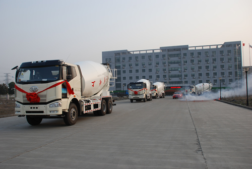 (上圖為水泥攪拌車(chē)發(fā)車(chē)現(xiàn)場(chǎng))